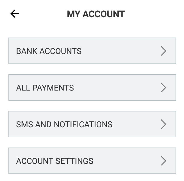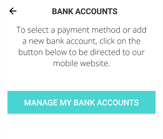 Select "Bank accounts" and "Manage my bank account". The system will redirect you to our mobile website, and the list of payment methods will be displayed on the screen.