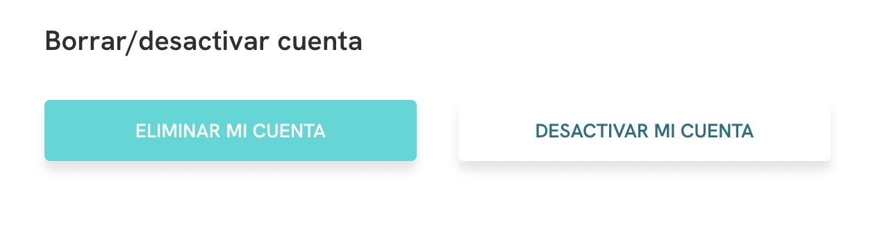 2- Eliminación de su cuenta: Esta opción le permite cerrar su cuenta permanentemente. Todos los datos e información asociada a su cuenta será borrada e imposible de recuperar. Si necesita volver a inscribirse en nuestra plataforma en un futuro, tendrá que volver a crear una cuenta y empezar de cero.