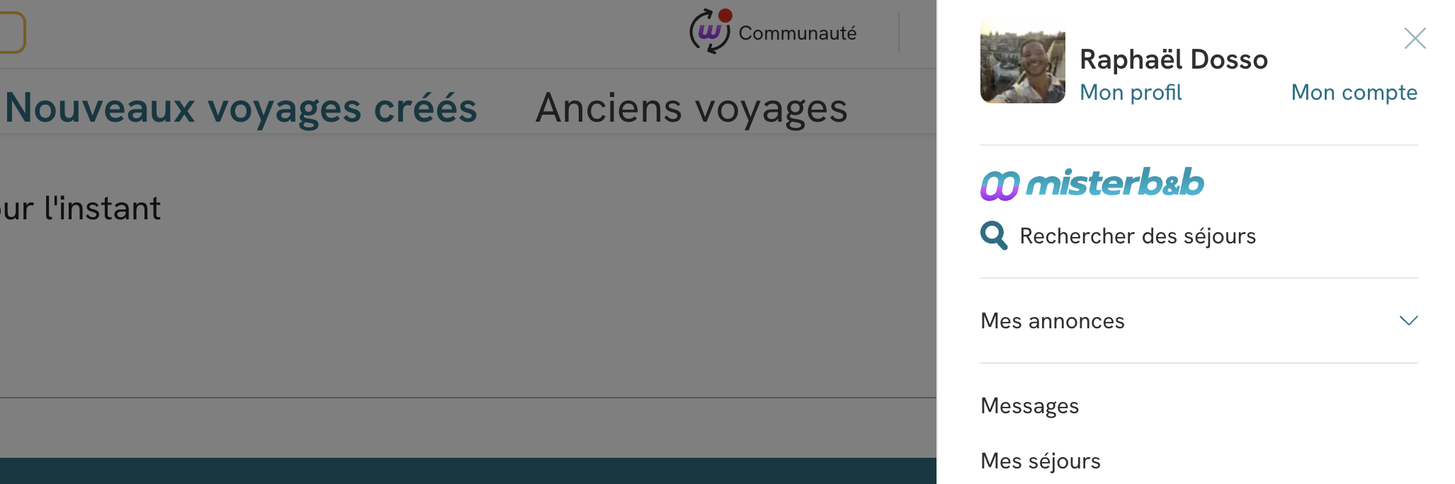Afin de visualiser vos voyages à venir ou vos voyages passés en tant que voyageur, veuillez cliquer sur « Mes séjours » après vous être connecté à votre compte.