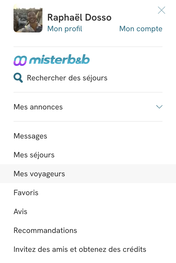 Pour voir vos réservations en tant qu'hôte, veuillez cliquer sur « Mes voyageurs »