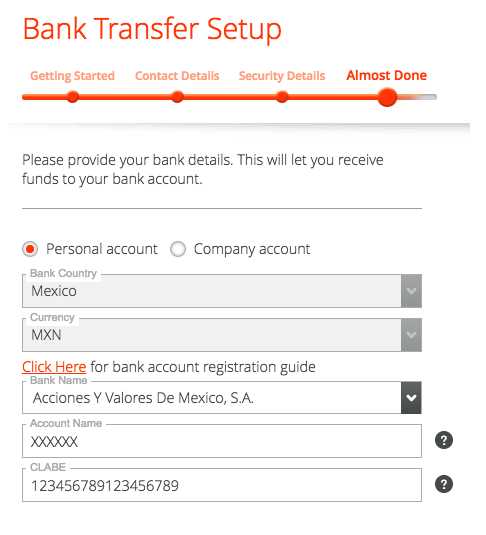 L'examen des nouvelles demandes peut prendre jusqu'à plusieurs jours ouvrables. Une fois l'examen terminé, vous recevrez un e-mail de confirmation avec plus de détails. Dans certains cas, vous pouvez être invité à fournir des détails supplémentaires tels qu'une copie de votre pièce d'identité, de votre certificat de constitution (sociétés), de votre relevé bancaire ou d'autres documents.